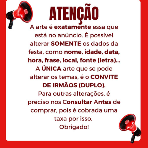 - Conteúdo: O convite inclui design temático com todas as informações da festa.